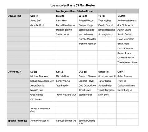 Rams Current Roster. Web the rams have released their first unofficial depth chart of the 2023 preseason. Web recent notable honors with current members of the los angeles rams include nfl coach of the year in 2017 for sean mcvay, super.